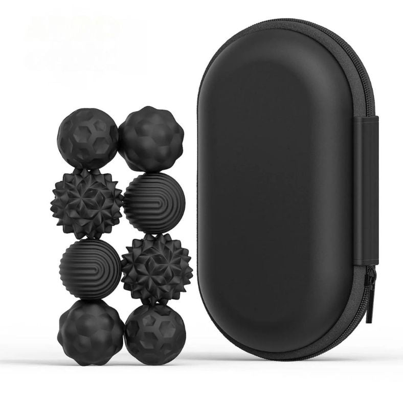 ORBIQ™ is geen speelgoed, maar een stijlvol hulpmiddel voor volwassenen die last hebben van onrust, afleiding of overprikkeling. De magnetische siliconen fidgetballen helpen je focussen, kalmeren je zintuigen en geven je handen precies genoeg te doen – zónder afleiding. Elke bal heeft een unieke textuur (van honingraat tot cabochon) die je onbewust laat variëren in druk en beweging. Dat is geen toeval, maar slim neurodesign.