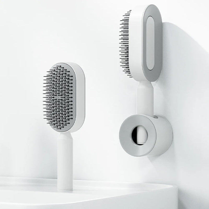 Er is niets frustrerender dan worstelen met pijnlijke klitten, haren die vastzitten in je borstel of eindeloos schoonmaken na het borstelen. Gelukkig is er nu de SwiftBrush™ Zelfreinigende Massage Haarborstel, speciaal ontworpen voor vrouwen die moeiteloos en stijlvol hun haar willen verzorgen. Deze revolutionaire borstel is de perfecte oplossing voor dagelijks gemak en ultieme haarverzorging.